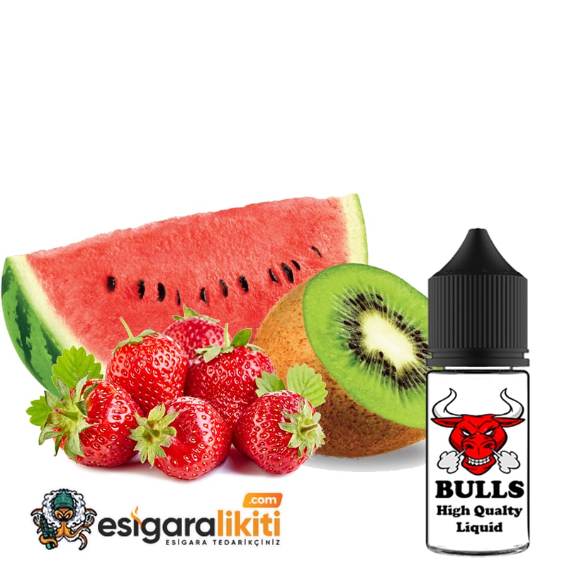 Marka: Bull's High Quality Liquid Hacim: 30ML Gorilla Şişe Aroma: Çilek, karpuz ve kivi VG/PG Oranı: 80/20 Menşei: Türkiye İçerik Bilgisi: Sigma VG Merck PG Merck Nic TFA-FA-Capella Aromalar
