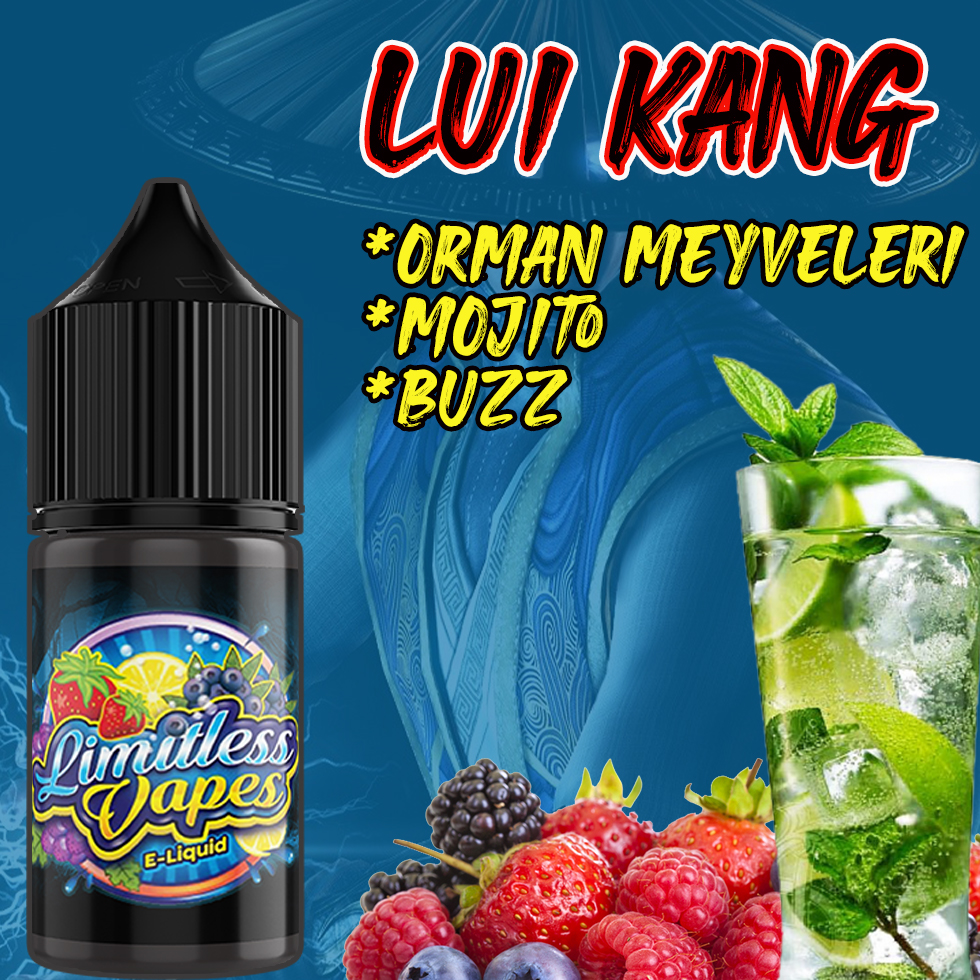 Limitless Vapes Lui Kang Likit AROMA: Orman meyveleri, mojito HACİM: 30 mililitre İÇİM TÜRÜ: Ciğer çekim (DL) Yumuşak içim VG-PG ORANI: 80/20 BİLEŞENLER: İthal Mix VG, Merck PG, Select Nikotin. DEMLENME: 30 gün, hava temassız, ışıksız, kontrollü sıcaklıkta.